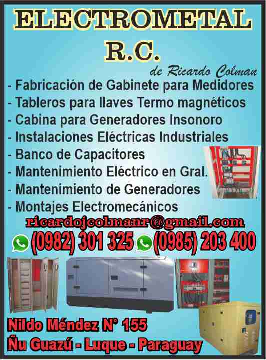 ELECTRICIDAD INDUSTRIAL, ELECTROMECANICAS, TABLEROS ELECTRICOS, INSTALACIONES ELECTRICA, INSTALACIONES INDUSTRIALES, ELECTRICIDAD, INSTALACIONES, BANCO DE CAPACITORES, GENERADORES, MONTAJES ELECTROMECANICOS, PREFABRICADOS DE HORMIGON