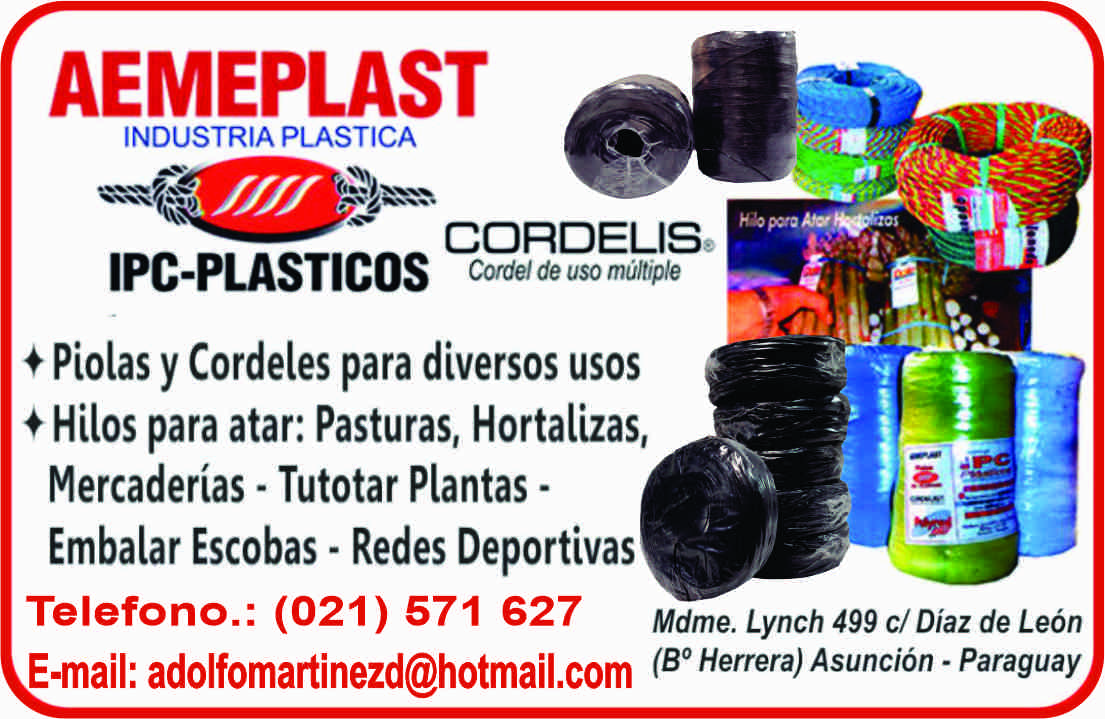 PLASTICOS - FABRICA DE, HILO PARA ATAR, HILOS PARA ENFARDADORAS, AGROGANADERA, REDES DEPORTIVAS, MEDIA SOMBRA, PIOLAS Y CORDELES, HORTICOLA, NYLON